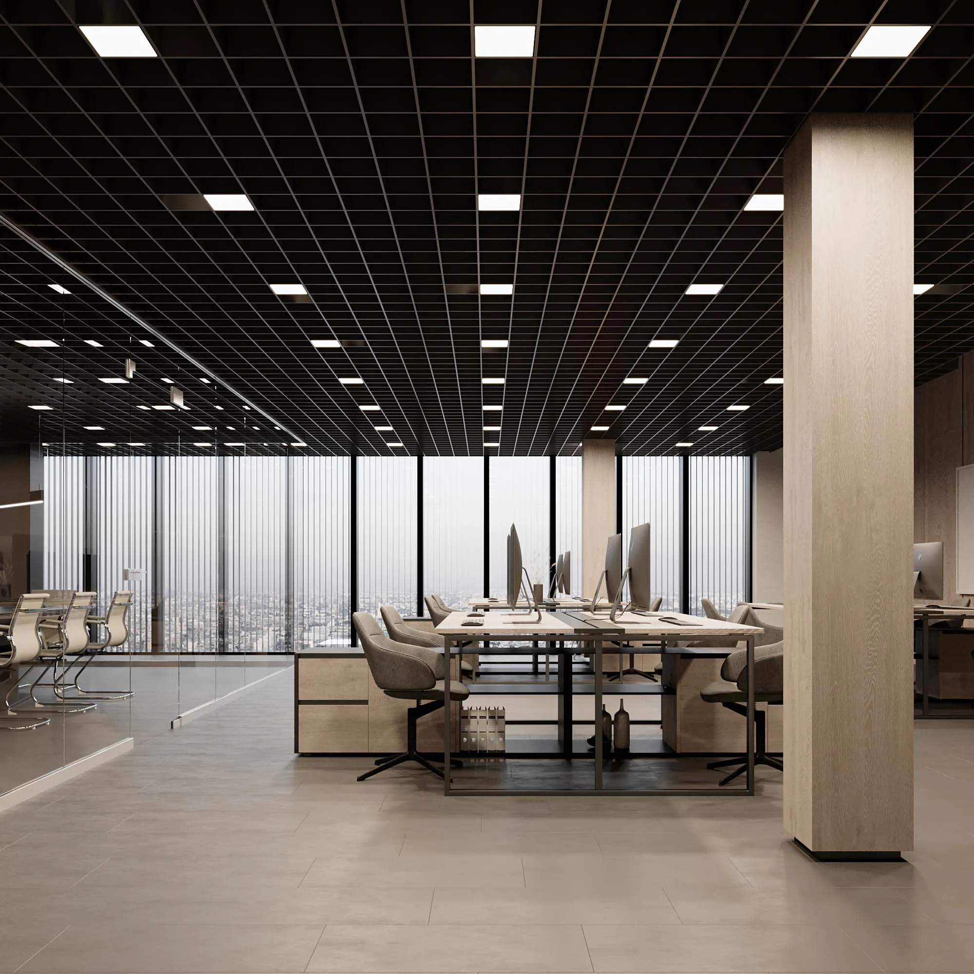 Встраиваемый светильник даунлайт для установки в потолки Грильято с размером ячейки 200х200 мм и высотой направляющих 30, 40 или 50 мм. Мощность 24 Вт, св. поток 2033 лм, 87 лм/Вт, тёплый 3000 K, CRI>90, угол 100°, напряжение питания 230 В. Чёрный квадратный корпус из алюминия, степень защиты IP40. Размер: длина 190 мм, ширина 190 мм, высота 40 мм. Монтаж встраиваемый, установочное отверстие: длина 190 мм, ширина 190 мм. Драйвер 24-40 В, 600 мА, пульсация <1%.