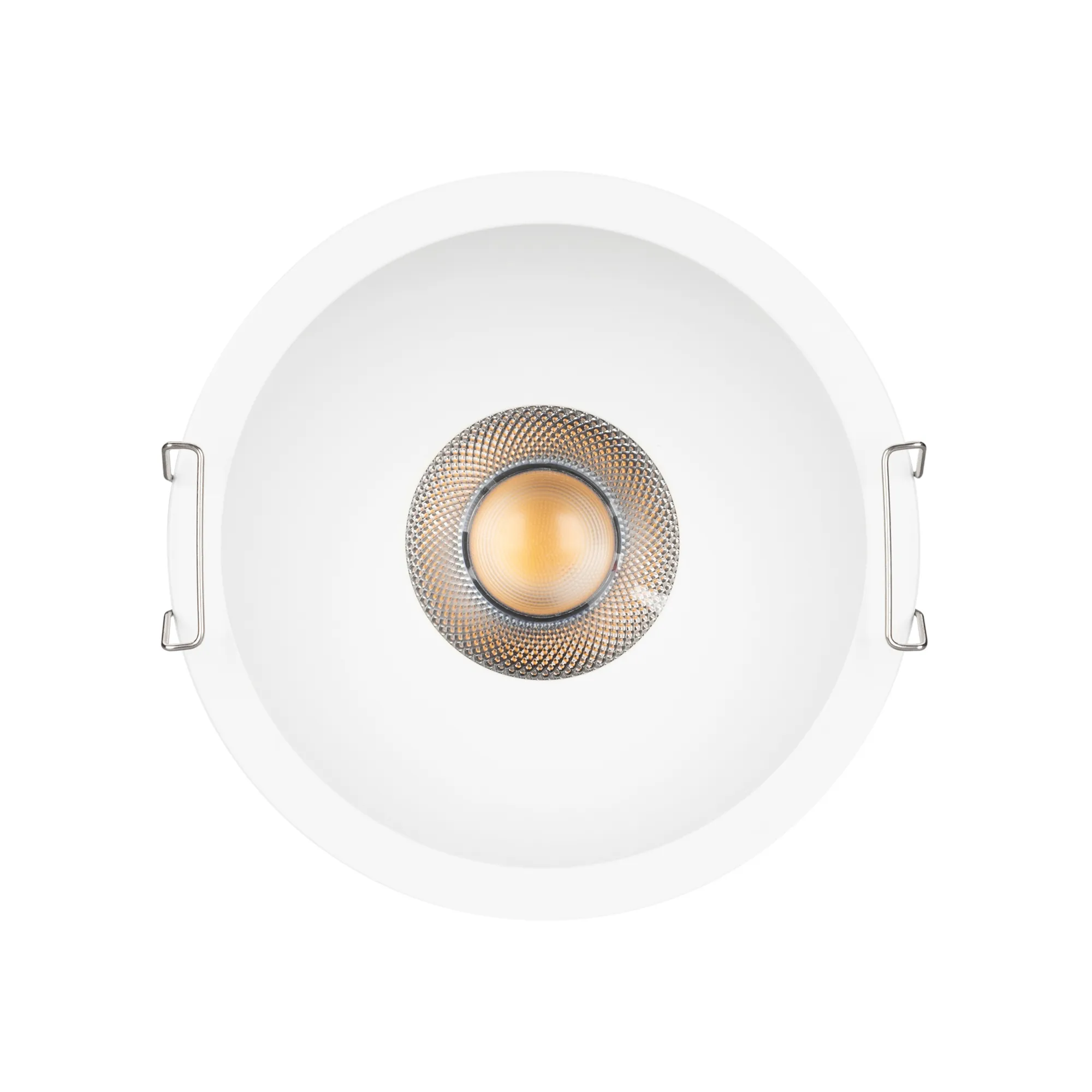 Встраиваемый светильник даунлайт. Мощность 20 Вт, св. поток 1810 лм, 90 лм/Вт, дневной 4000 K, CRI>90, угол 50°, напряжение питания 230 В. Белый круглый корпус из алюминия, степень защиты IP20. Размер: диаметр 123 мм, высота 68 мм. Монтаж встраиваемый, установочное отверстие: диаметр 110 мм. UGR<14. Драйвер 27-42 В, 500 мА, пульсация <2%.