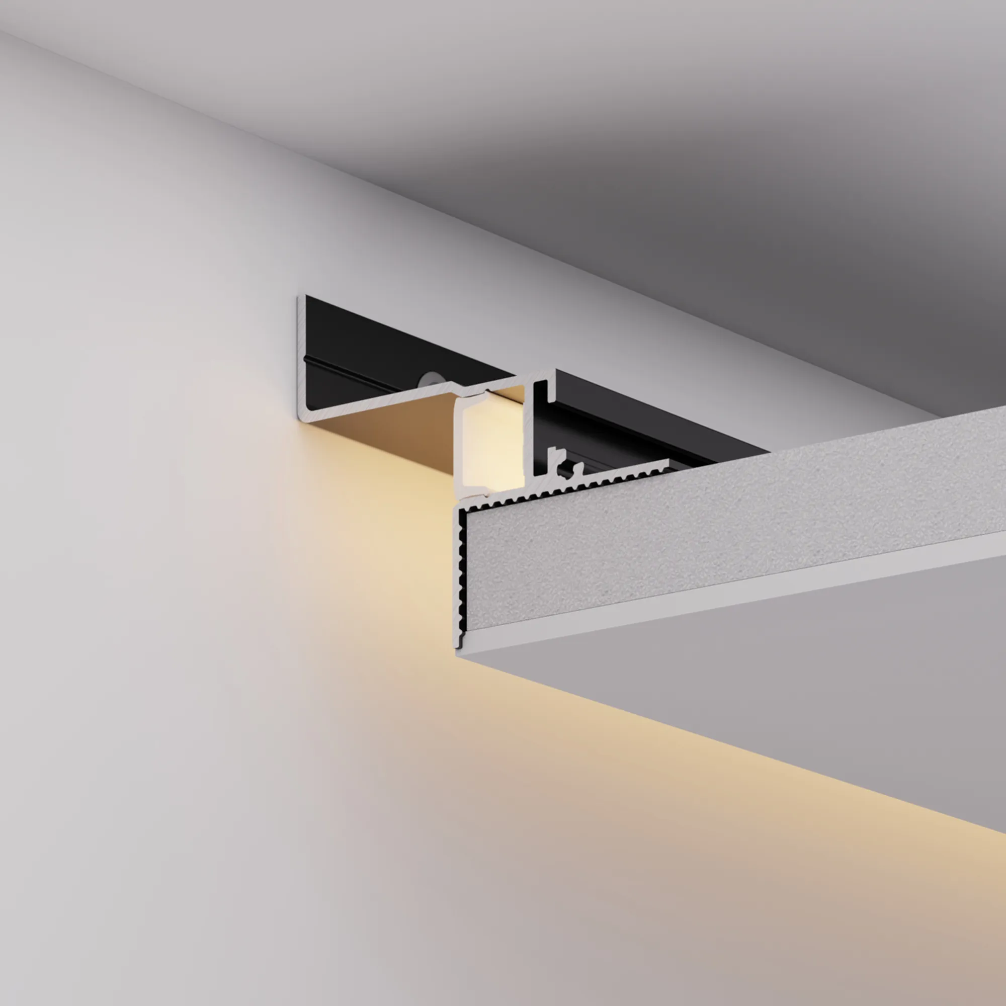 Алюминиевый анодированный встраиваемый профиль для светодиодных лент и линеек. Профиль для создания эффекта парящего потолка с мягким свечением по периметру помещения. Цвет - черный. Габаритные размеры (L×W×H): 3000х47х39,4 мм. Ширина площадки для ленты 10,3 мм. Ширина зазор между потолком и стеной - 20 мм. Экраны, заглушки и другие аксессуары приобретаются отдельно. Цена за 1 метр.