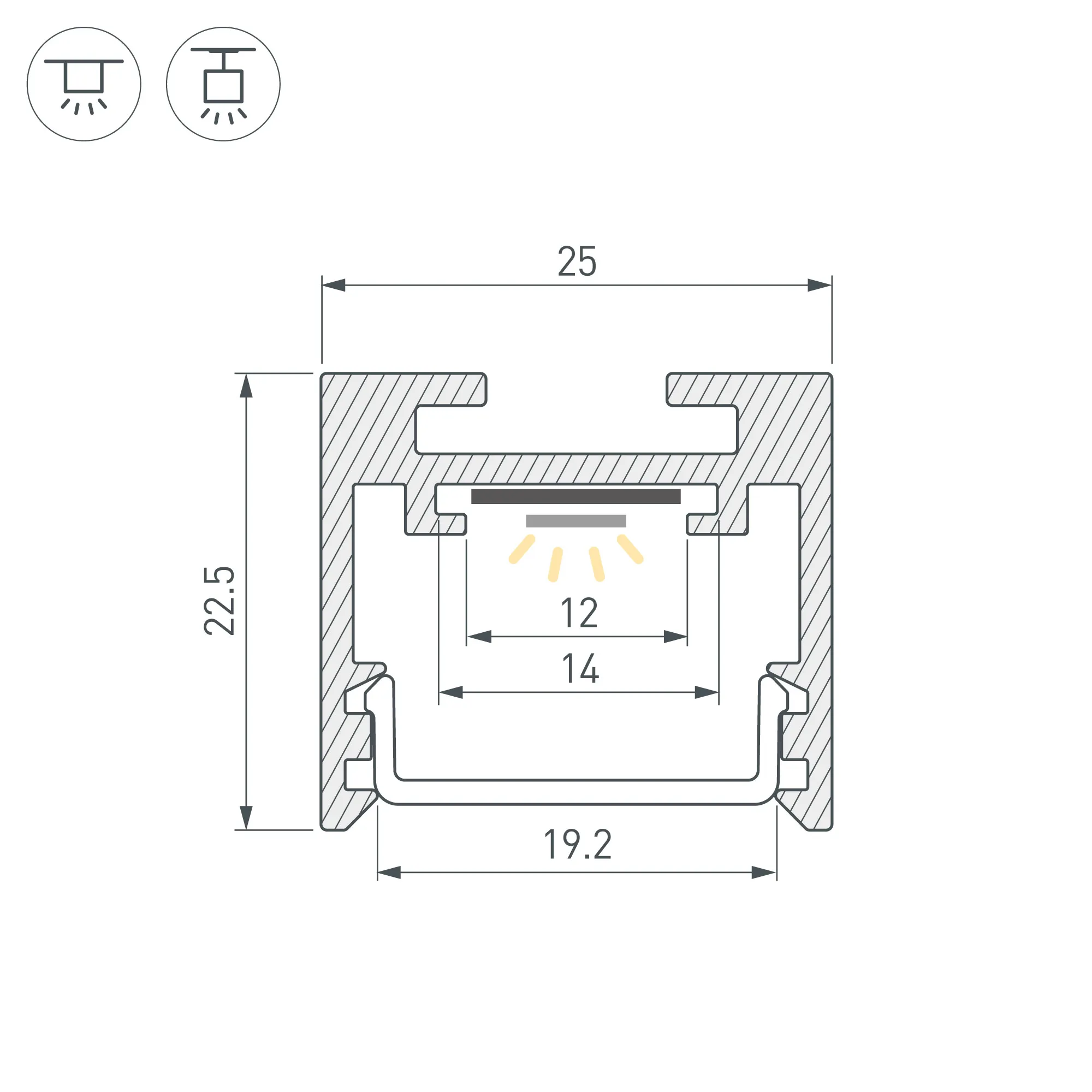Под заказ от 100 м. Алюминиевый профиль для светодиодных лент и линеек. Цвет - серебристый RAL9006 (порошковая окраска). Габаритные размеры (L×W×H): 2500x25x22 мм. Ширина площадки для ленты 12 мм. Экраны, заглушки и другие аксессуары приобретаются отдельно. Цена за 1 метр.