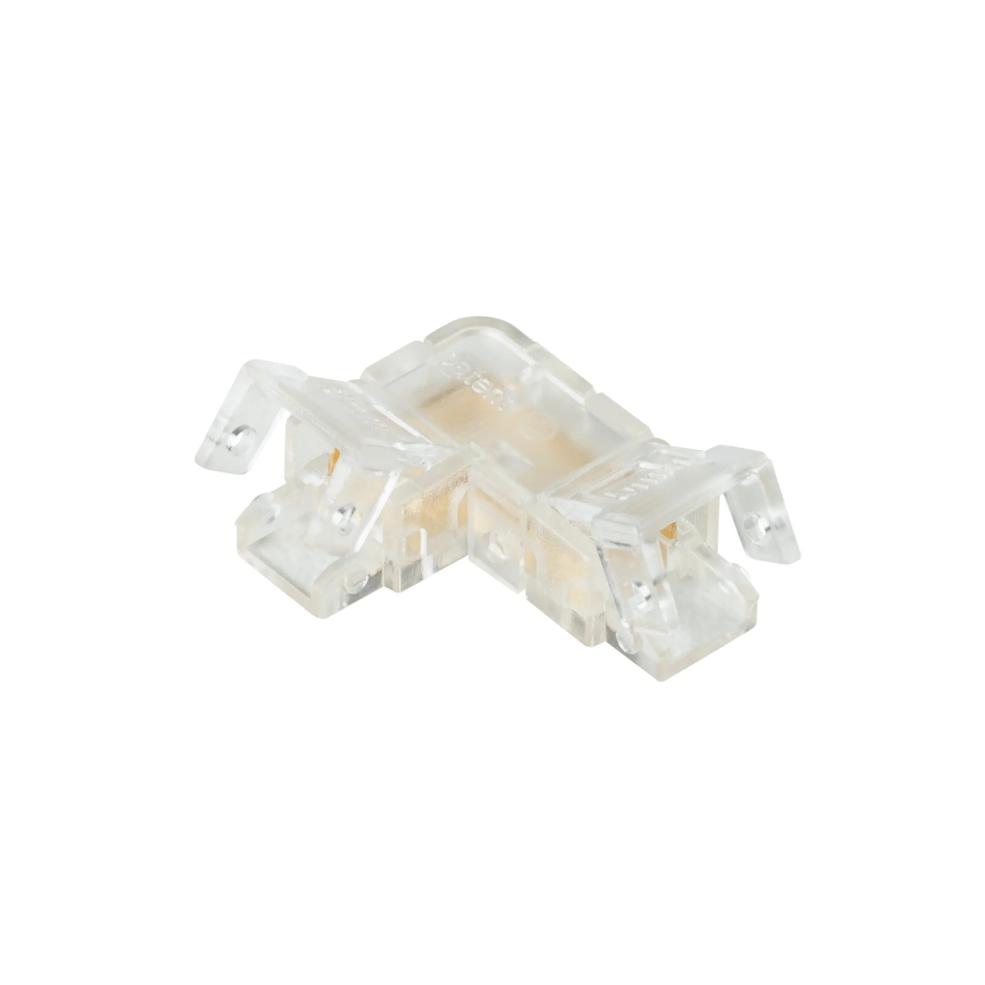 Угловой коннектор для соединения 2-х отрезков открытых IP20 светодиодных одноцветных лент (2216, 2835, COB) шириной 5 мм. Материал - прозрачный пластик. Обеспечивает соединение без видимых разрывов. Максимальный допустимый ток 3 А, максимальное напряжение 24 В, степень защиты IP20. Цена за 1шт, 10шт/пакет.