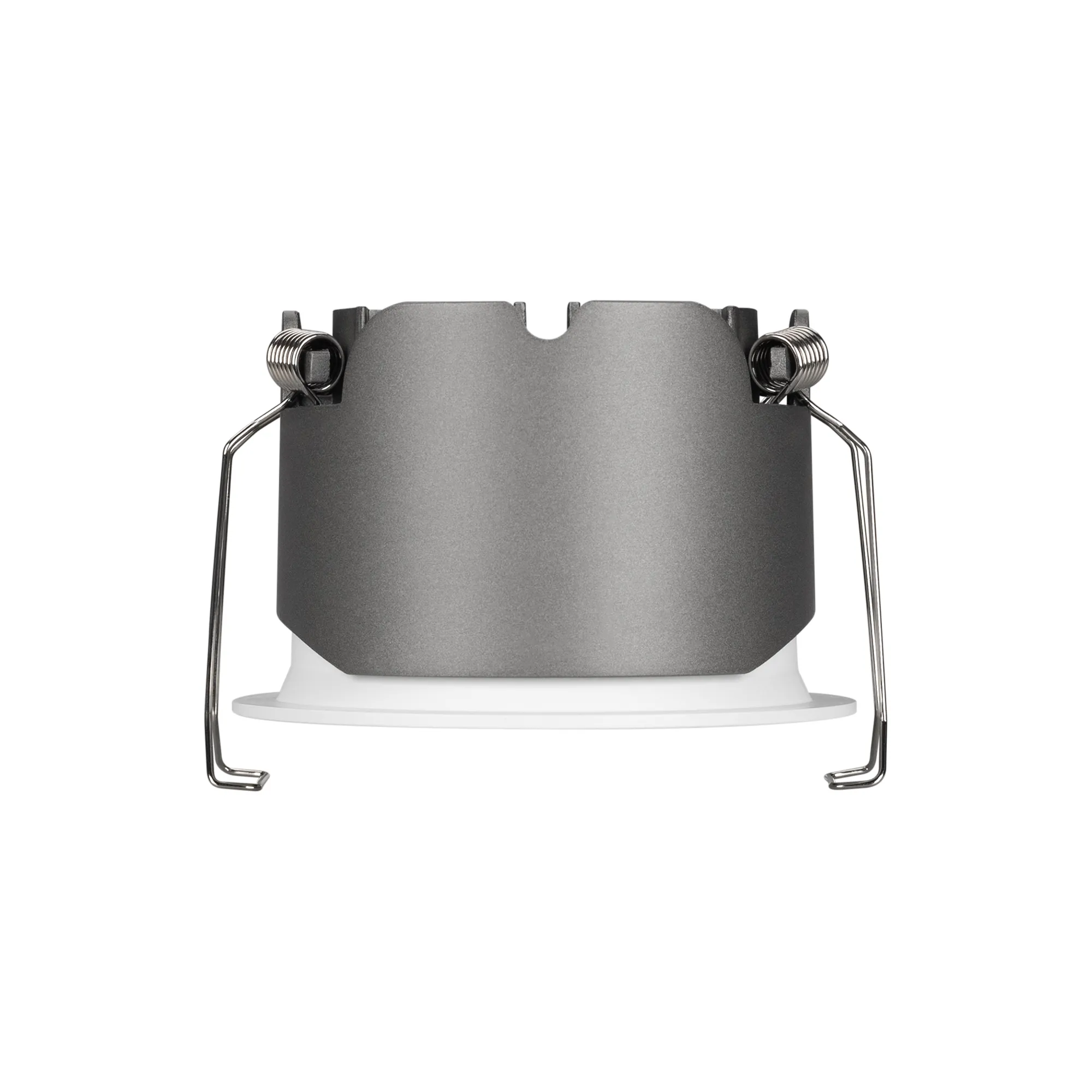 Встраиваемый светильник даунлайт. Мощность 10 Вт, св. поток 980 лм, 98 лм/Вт, тёплый 2700 K, CRI>90, угол 24°, напряжение питания 230 В. Белый круглый корпус из алюминия, степень защиты IP20. Размер: диаметр 82 мм, высота 53 мм. Монтаж встраиваемый, установочное отверстие: диаметр 75 мм. UGR<14. Драйвер 30-42 В, 250 мА, пульсация <2%.