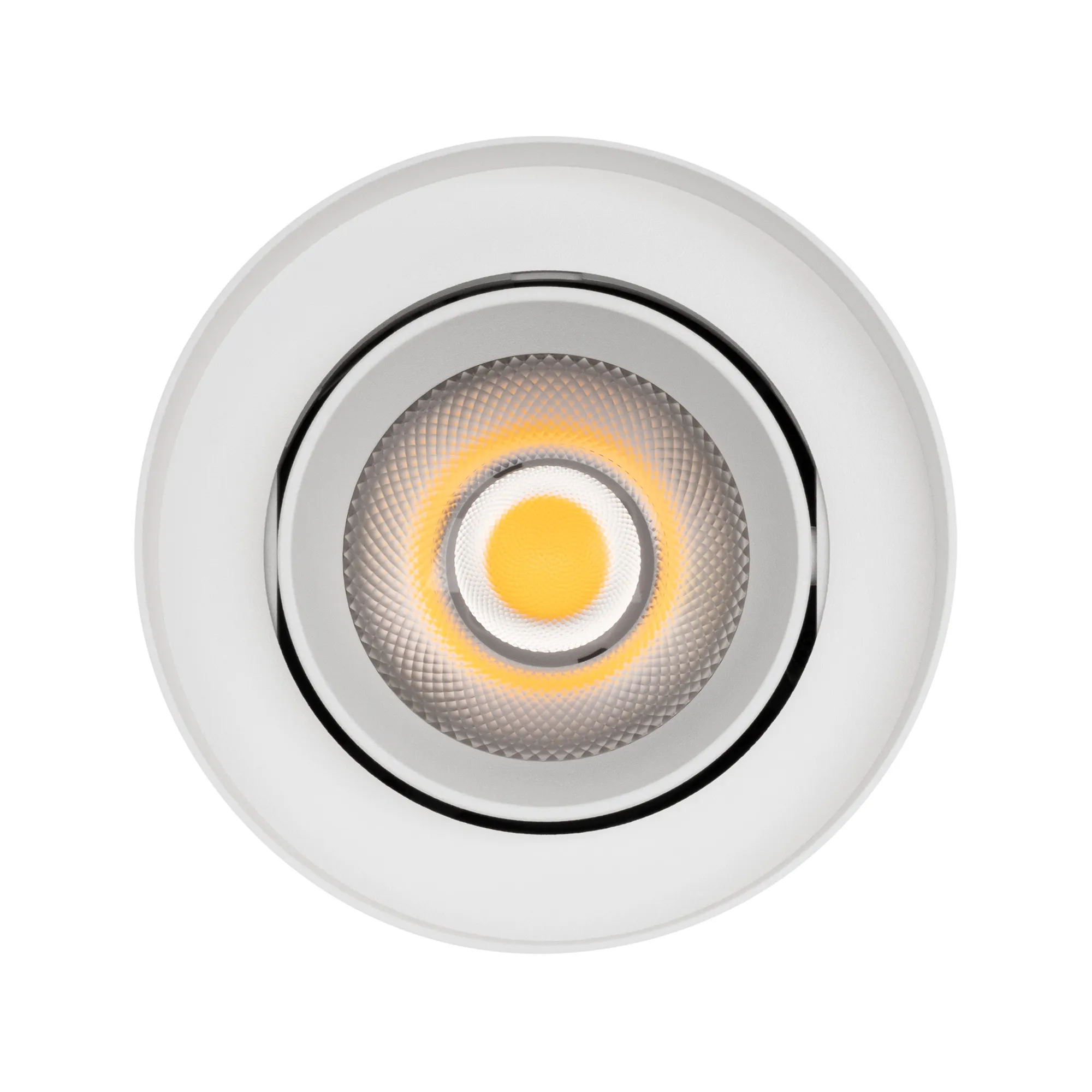 Накладной интерьерный светильник. Мощность 18 Вт, св. поток 1700 лм, 99 лм/Вт, теплый 3000 K, CRI>90, угол 50°, регулируемое направление луча 40°(20+20), поворотный световой модуль вокруг своей оси на 340°, UGR <11, напряжение питания 230 В. Белый круглый корпус из алюминия, степень защиты IP54. Размер: диаметр 110 мм, высота 145 мм. Монтаж накладной. Драйвер 27-43 В, 450 мА, пульсация <1%.