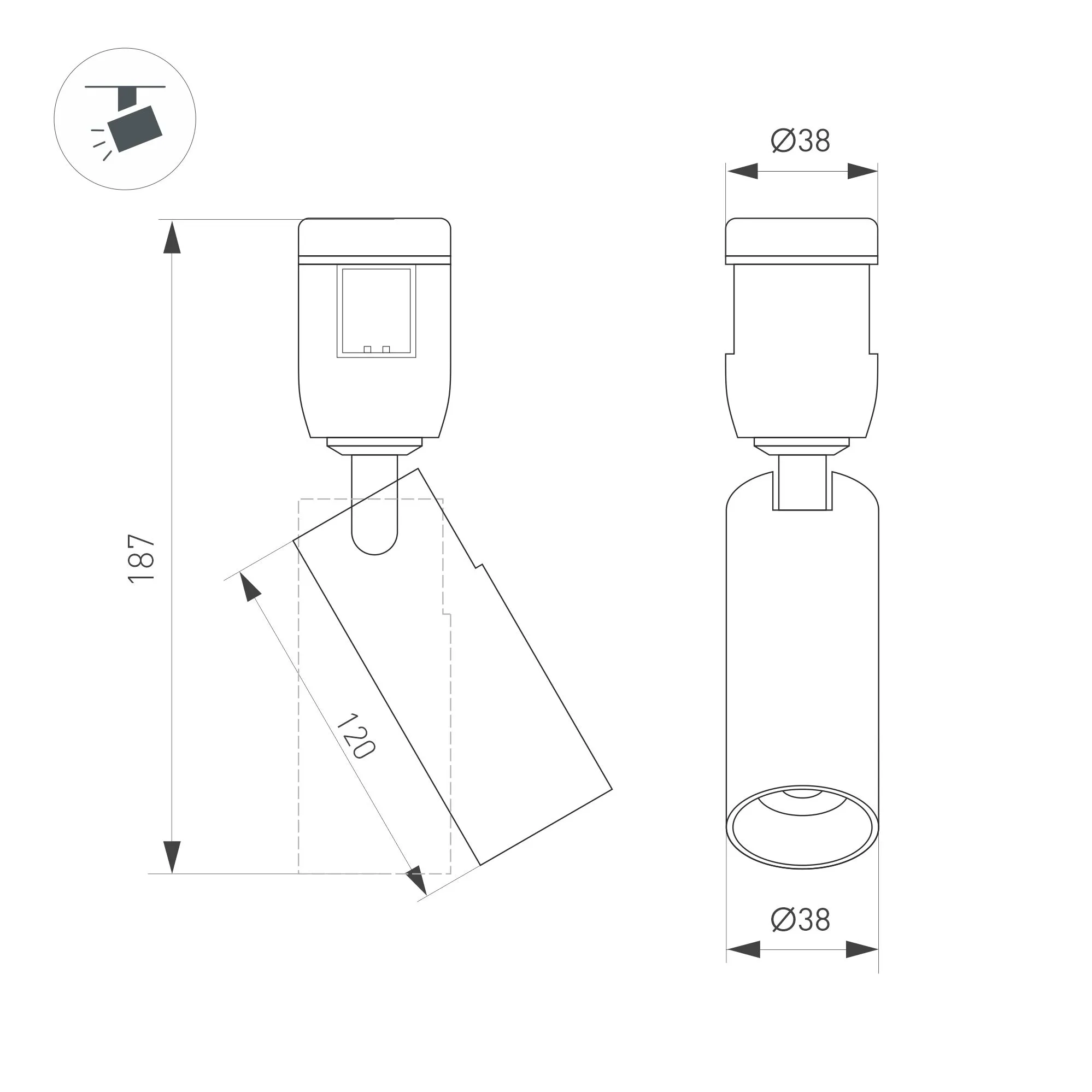 Светильник ART-APRIORI-SPOT-TURN-R38-8W Day4000 (OG, 36 deg, 48V) (Arlight, IP20 Металл, 3 года)