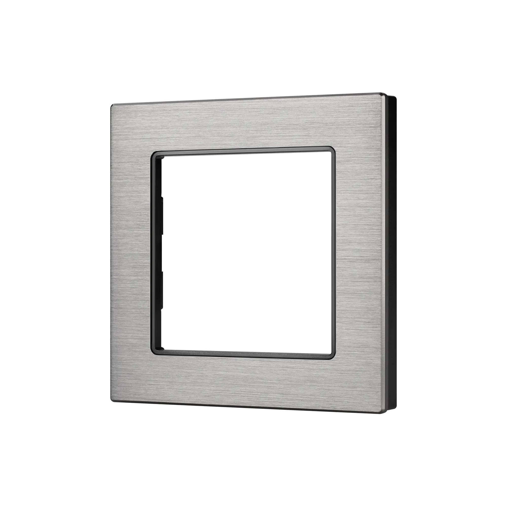 Рамка алюминиевая на 1 пост, под встраиваемый механизм (квадрат). Цвет - серый. Ориентации монтажа - горизонтальная/вертикальная.