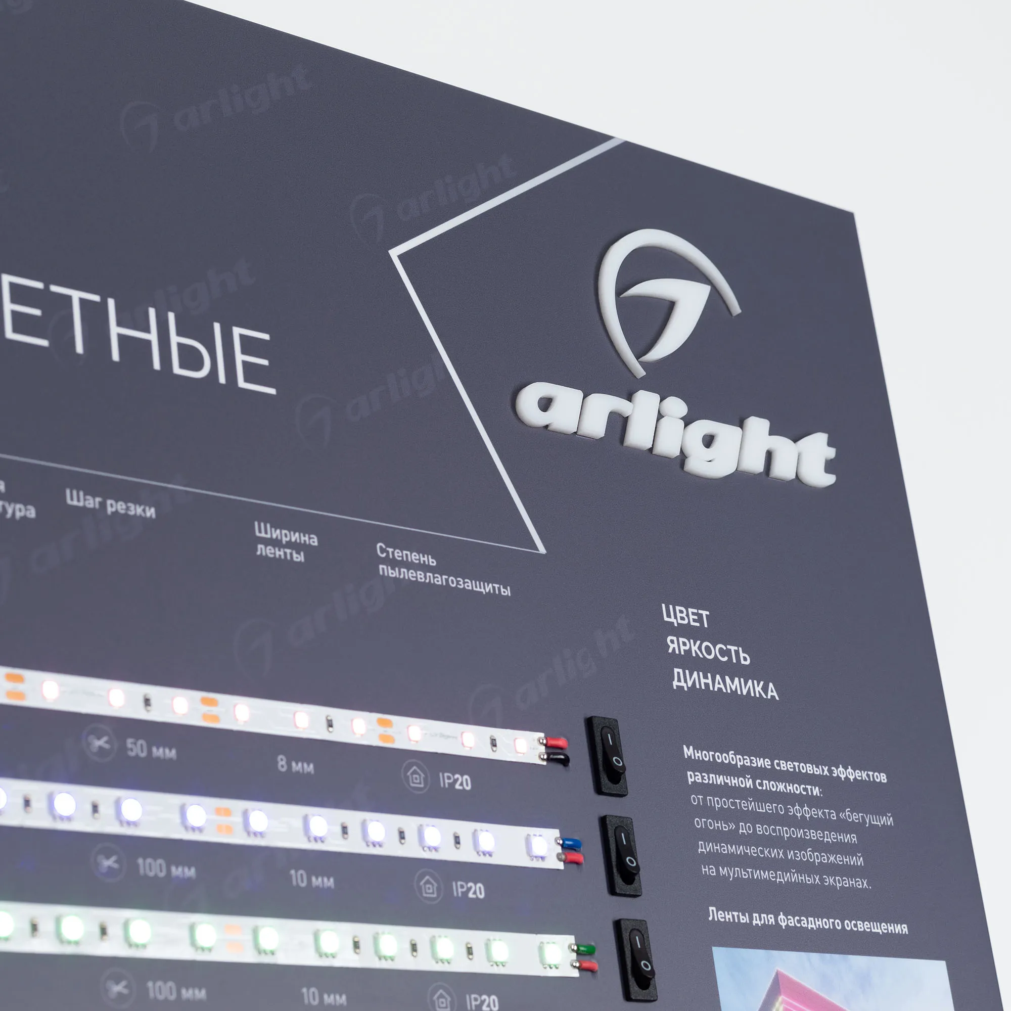 В магазине Арлед Маркет Вы можете купить "Стенд Ленты Мультицветные ARL-RGB-04-830x600mm (230V) (Arlight, -)"