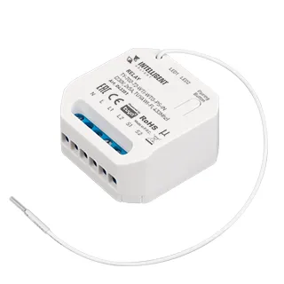 Релейный модуль любых видов нагрузки AC 230V. Напряжение питания AC 100-240V, максимальный ток нагрузки 5А на канал, 2 канала. Максимальная выходная мощность 1000 Вт для LED ламп, 2200 Вт для резистивной нагрузки. Управление через WI-FI 2.4ГГц. Управление с помощью клавишных панелей RF 433кГц серии KINETIC. Совместим с платформой TUYA. Поддерживается управление со смартфона через приложение INTELLIGENT ARLIGHT и ЯНДЕКС АЛИСА. Габариты 44x44x22.5 мм
