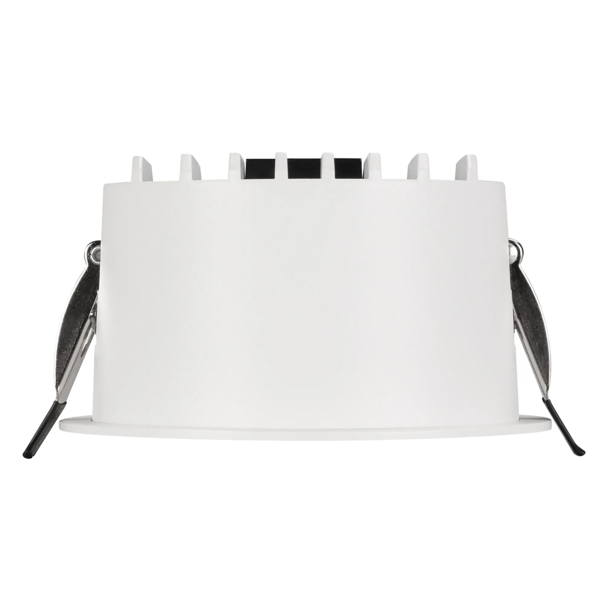 Встраиваемый светильник даунлайт. Мощность 14 Вт, св. поток 1170 лм, 83 лм/Вт, тёплый 2700 K, CRI>90, угол 85°, напряжение питания 230 В. Белый круглый корпус из алюминия, степень защиты IP54. Размер: диаметр 105 мм, высота 58 мм. Монтаж встраиваемый, установочное отверстие: диаметр 95 мм. Драйвер 26-42 В, 350 мА, пульсация <2%.