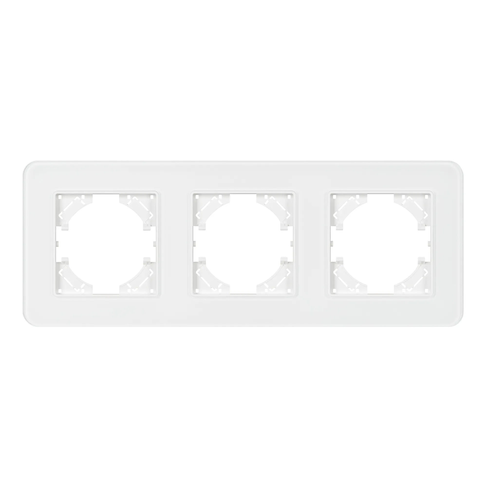 Рамка стеклянная на 3 поста, под встраиваемый механизм. Цвет - белый. Уровень герметичности IP20. Ориентация монтажа - горизонтальная (основным ориентиром служат посадочные выступы для накладки механизма).