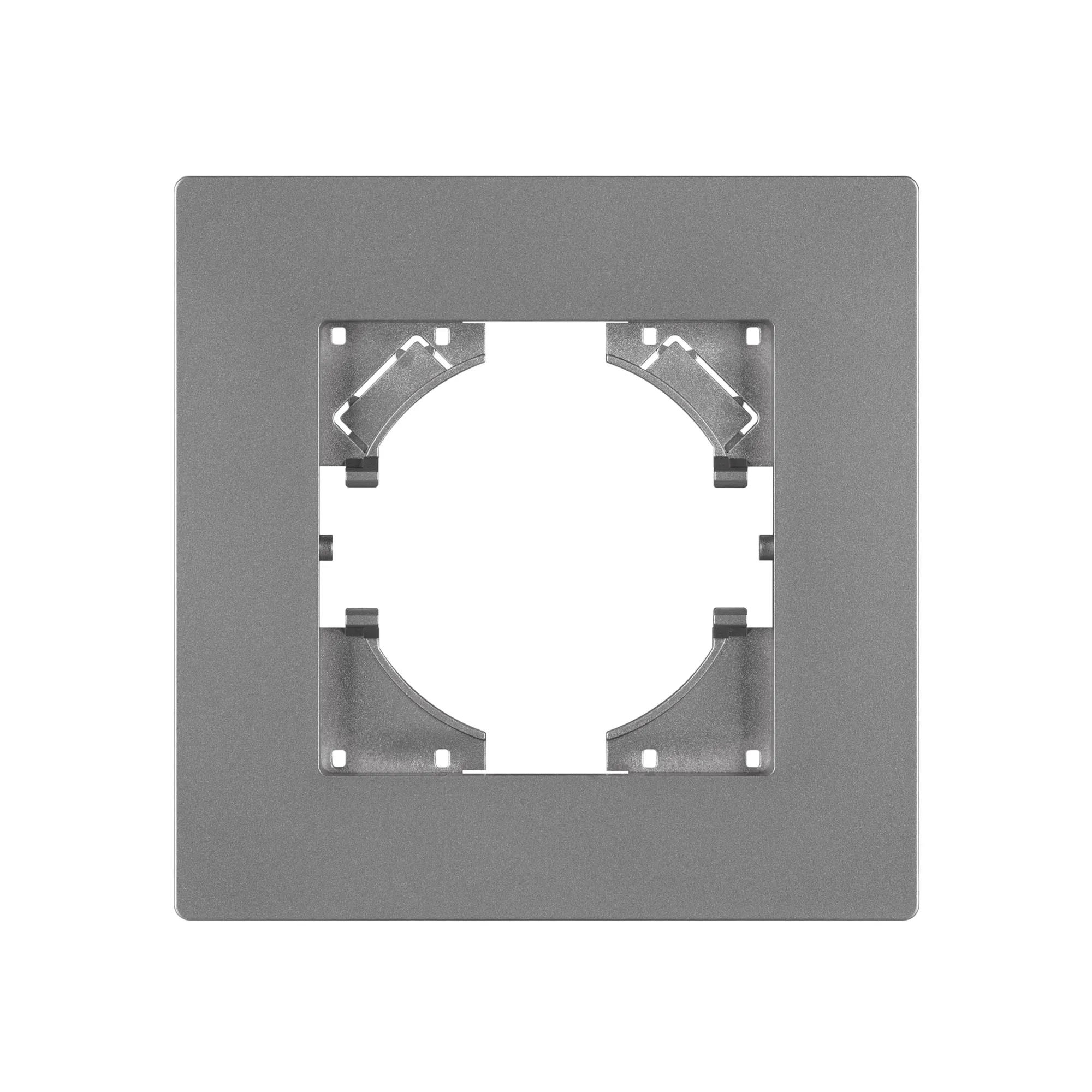 Рамка пластиковая на 1 пост, под встраиваемый механизм. Цвет - серый. Уровень герметичности IP20. Ориентация монтажа - горизонтальная (основным ориентиром служат посадочные выступы для накладки механизма).