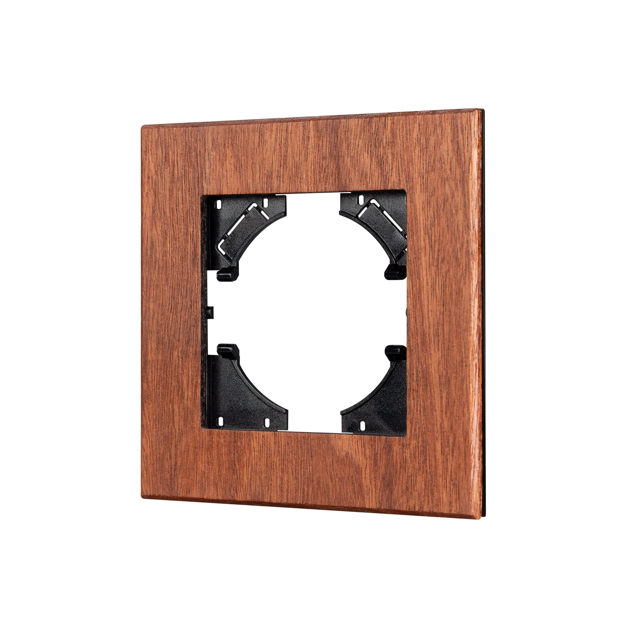 Рамка пластиковая на 1 пост с накладкой из натурального дерева, под встраиваемый механизм. Цвет - натуральное дерево*. Уровень герметичности IP20. Ориентация монтажа - горизонтальная (основным ориентиром служат посадочные выступы для накладки механизма).