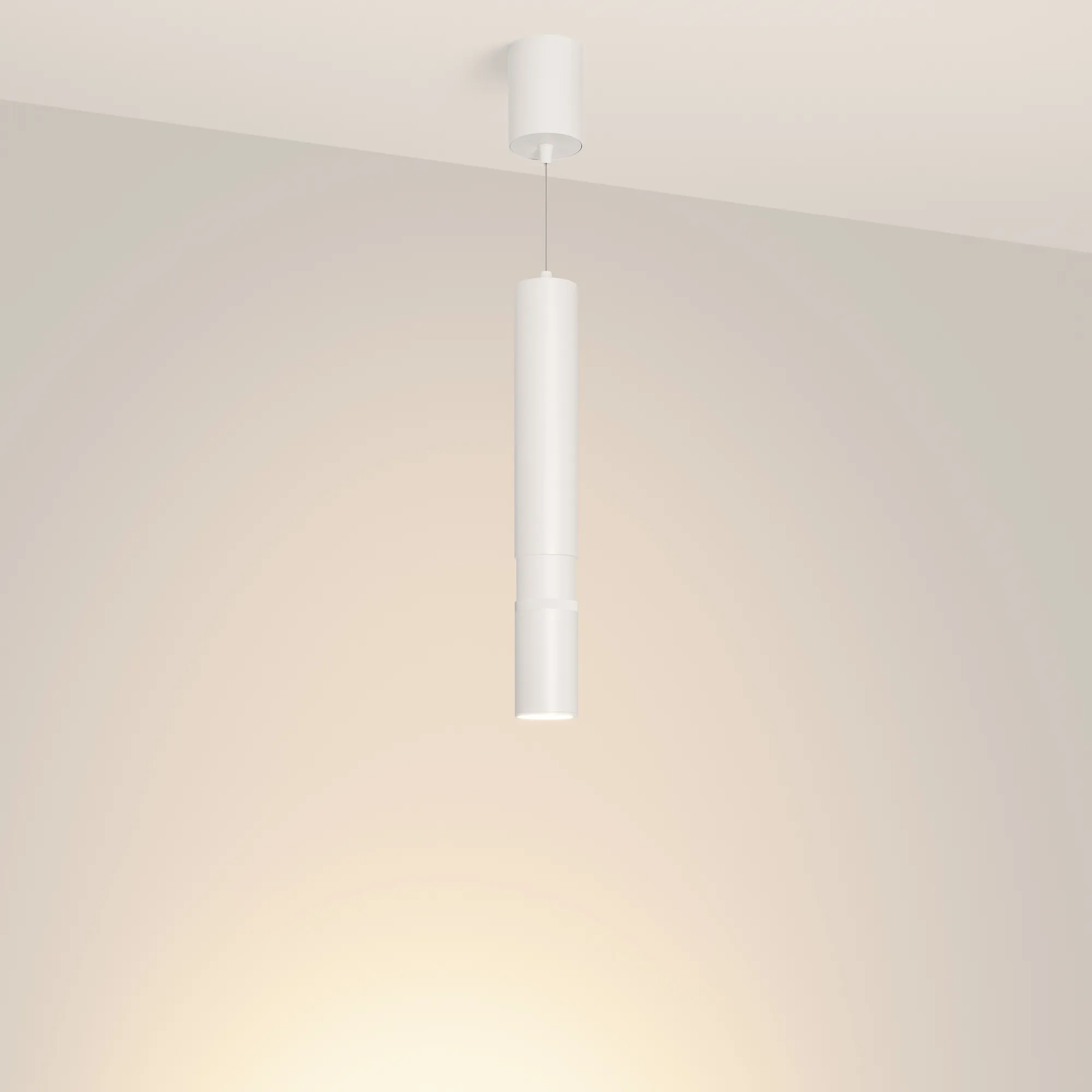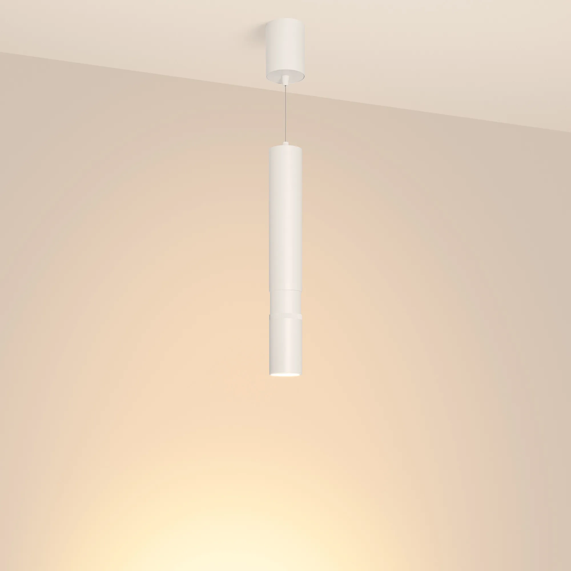 Декоративный подвесной светильник, 15Вт. Изменяемый цвет свечения 2700K/ 3300K/4000K (переключается), световой поток 288-1240 лм, 20-80 лм/Вт, регулируемый угол 8-80°, CRI>90. Корпус круглый, металл, цвет белый, IP20. Размеры светового модуля: DxH Ø60x370(430) мм, подвес регулируемый, макс. длина 1550 мм. Размер чаши Ø75x100 мм. Входное напряжение AC220-240V, мощность 15Вт. Драйвер встроенный 25-40V, 300 мА. Пульсация <1 %. Диммирование по TRIAC.