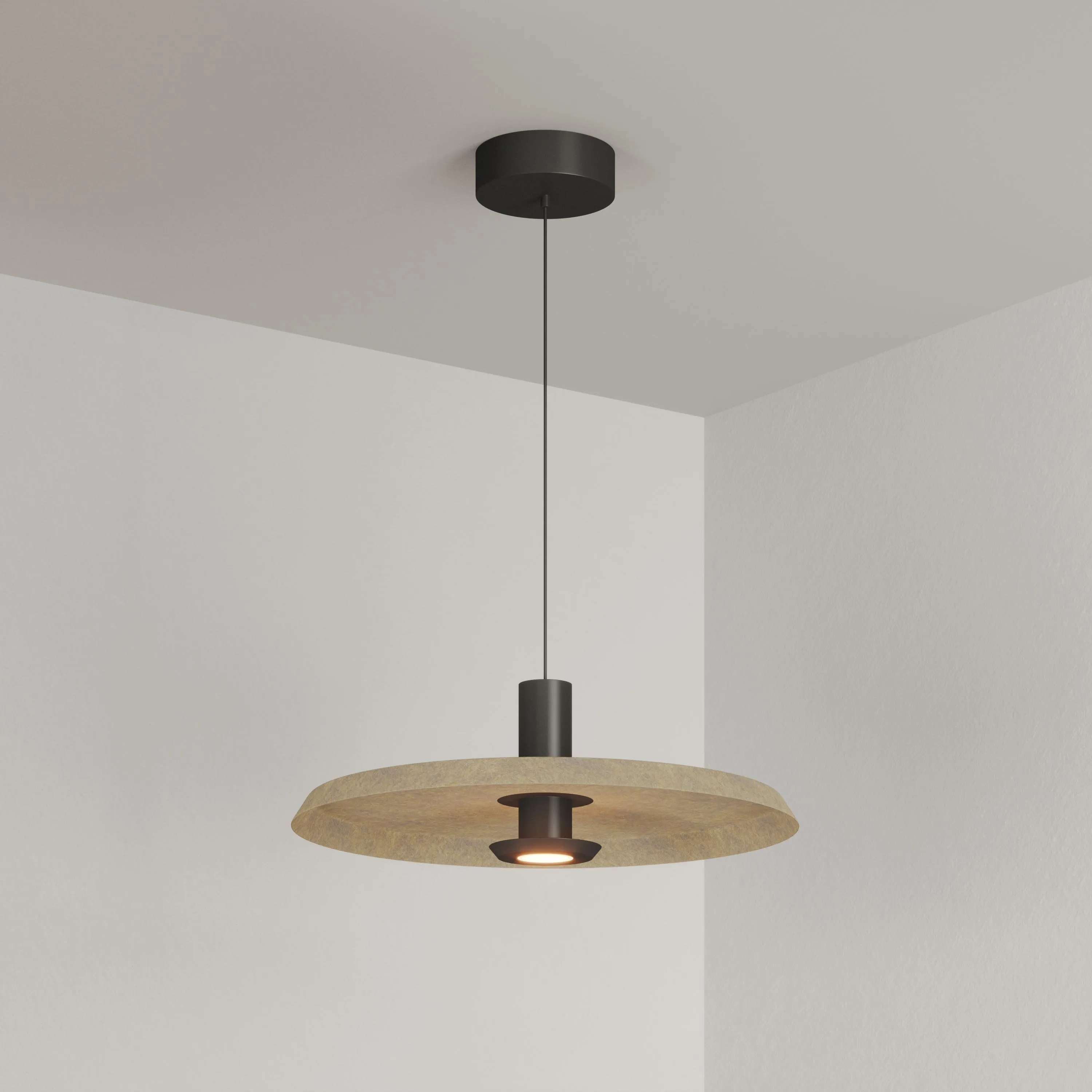 Подвесной светильник. Мощность 12 Вт, св. поток 648 лм, 54 лм/Вт, теплый 2700 K, CRI>94, угол 36°, напряжение питания 230 В. Бежевый фигурный плафон из переработанного фетра с кофейной внутренней поверхностью, линза-рассеиватель из PMMA, степень защиты IP20. Размер: диаметр 450 мм, высота 145 мм. Монтаж подвесной, длина подвеса 2000 мм, регулируемая. В комплекте 2 вида чаш. Габариты чаши (встраиваемая) Ø80 х 23 мм, врезное отверстие Ø60 мм. Габариты чаши (накладная) Ø120 x 35 мм. Драйвер 59В, 300 мА, пульсация <1%. Управление по TRIAC.