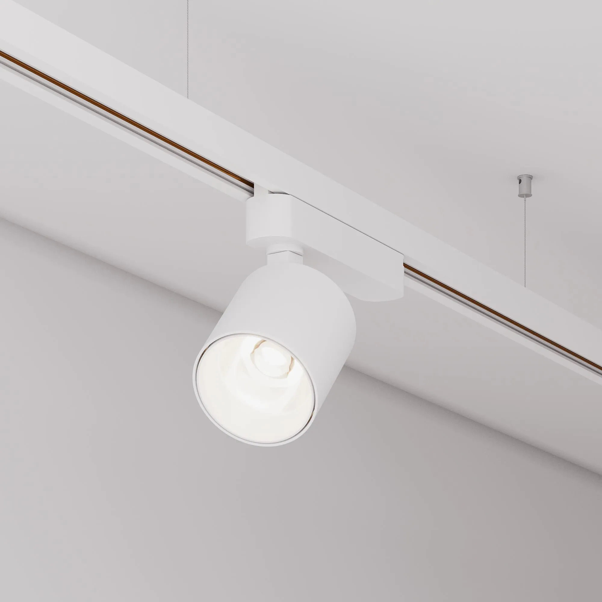 Светильник для однофазных треков, 8 Вт. Цвет свечения ТЁПЛЫЙ 3000K, световой поток 600 лм, угол 50°, CRI>90. Корпус круглый, металл, цвет белый, IP20. Размеры Ø60x59,7 мм. Монтаж на трек 1-фазный. Входное напряжение AC220-240V, мощность 10 Вт. Драйвер встроенный (25-40V, 250 mA).Пульсация <1%.