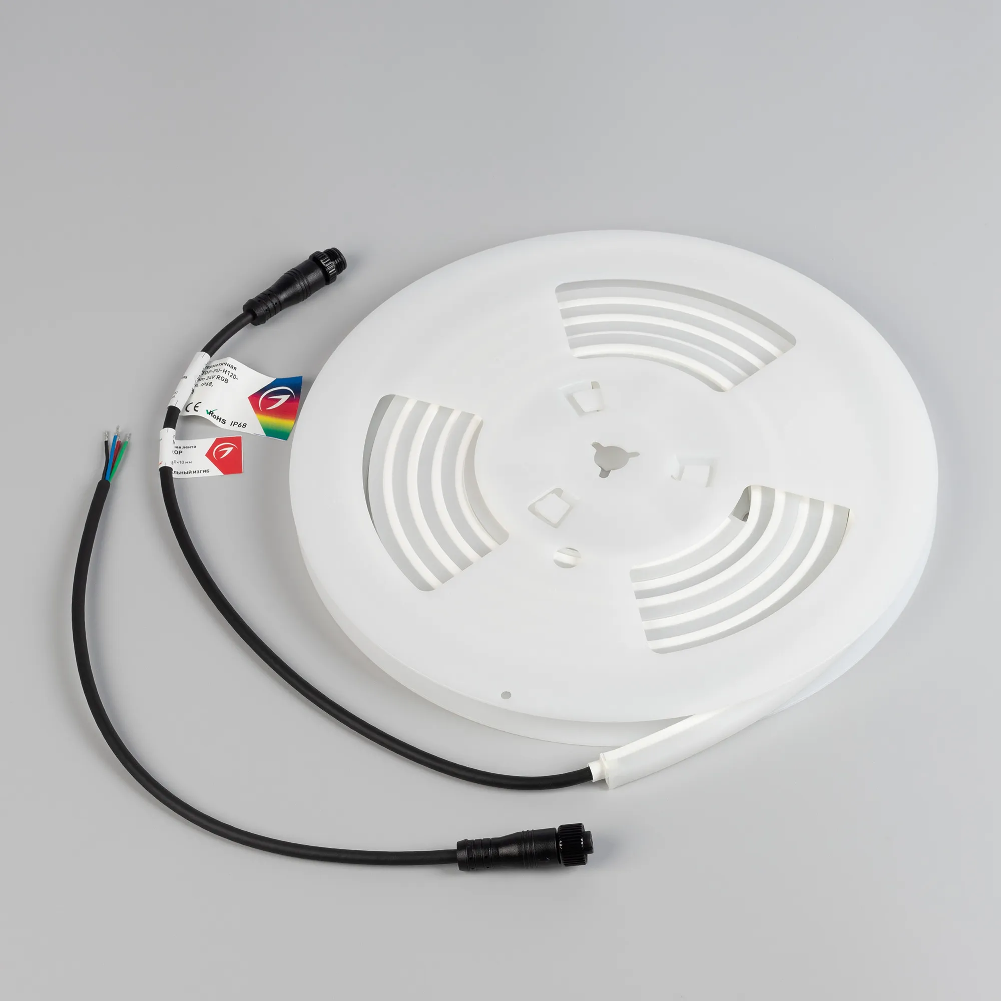 Лента герметичная WAVE-TOP-PU-H120-10x10mm 24V RGB (10 W/m, IP68, 3m, wire x1) (Arlight, Вывод боковой, 3 года)