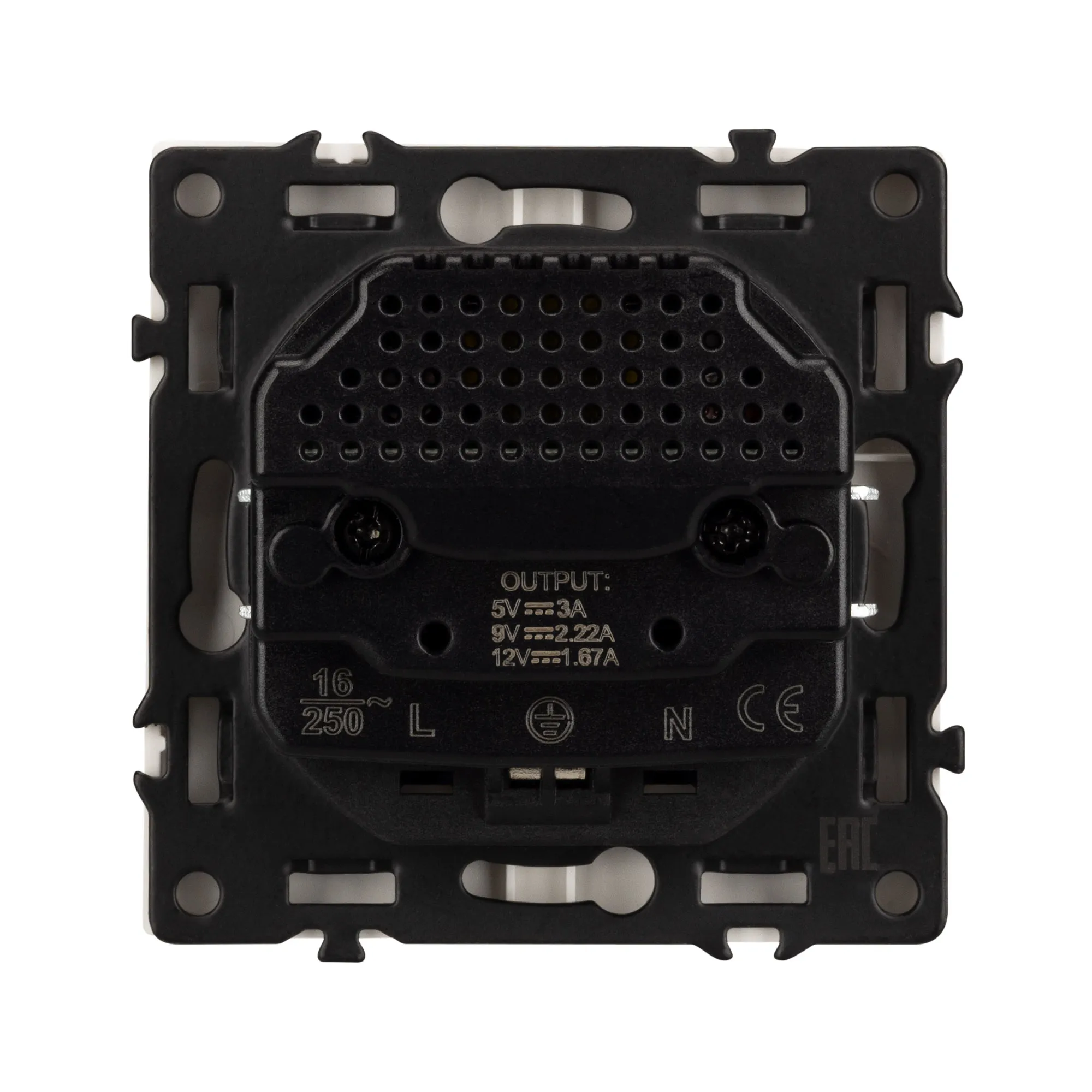 Механизм розетки с заземлением 1 пост 2 USB Type A+C порта. Цвет - белый кварц, с Soft-Touch покрытием. Без фронтальной рамки. Уровень пылевлагозащиты IP20. Розетка устанавливается в стандартный подрозетник круглого сечения диаметром 60мм.