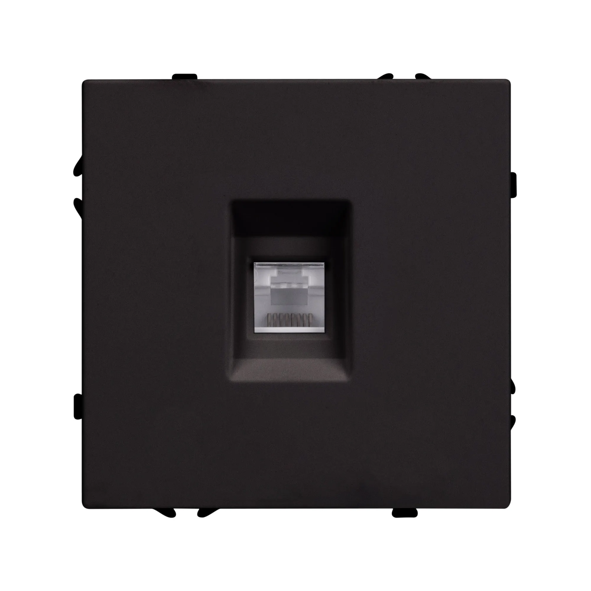 Механизм компьютерной розетки на 1 пост 6-й категории. Цвет - черный оникс, с Soft-Touch покрытием. Без фронтальной рамки. Уровень пылевлагозащиты IP20. Тип подключаемого разъема - RJ45. Розетка устанавливается в стандартный подрозетник круглого сечения диаметром 60мм.