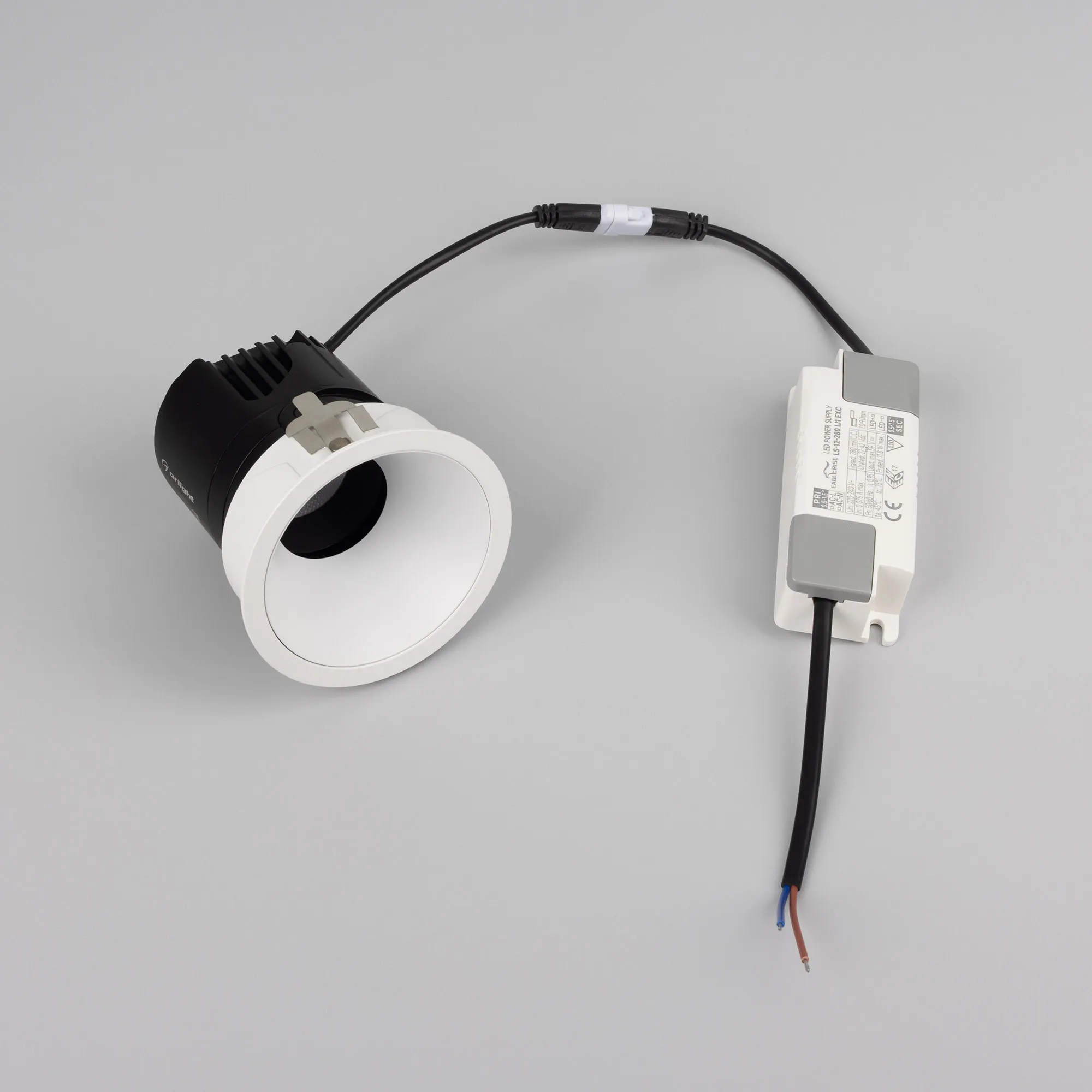 Встраиваемый светильник даунлайт. Мощность 12 Вт, св. поток 905 лм, 75 лм/Вт, теплый 3000 K, CRI>92, угол 24°, напряжение питания 230 В. Белый круглый корпус из алюминия, белый матовый отражатель, степень защиты IP20 . Размер: диаметр 82 мм, высота 86 мм. Монтаж встраиваемый, установочное отверстие: диаметр 75 мм. Драйвер 27-42 В, 280 мА, пульсация <0,5%.