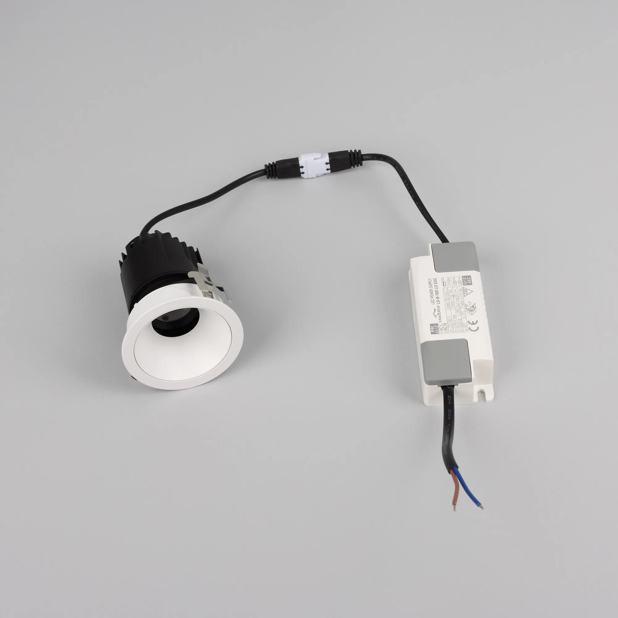 Встраиваемый светильник даунлайт. Мощность 7 Вт, св. поток 405 лм, 58 лм/Вт, теплый 3000 K, CRI>92, угол 24°, напряжение питания 230 В. Белый круглый корпус из алюминия, черный матовый отражатель, степень защиты IP20 . Размер: диаметр 62 мм, высота 72 мм. Монтаж встраиваемый, установочное отверстие: диаметр 55 мм. Драйвер, 27-42 В, 150 мА, пульсация <0,5%.