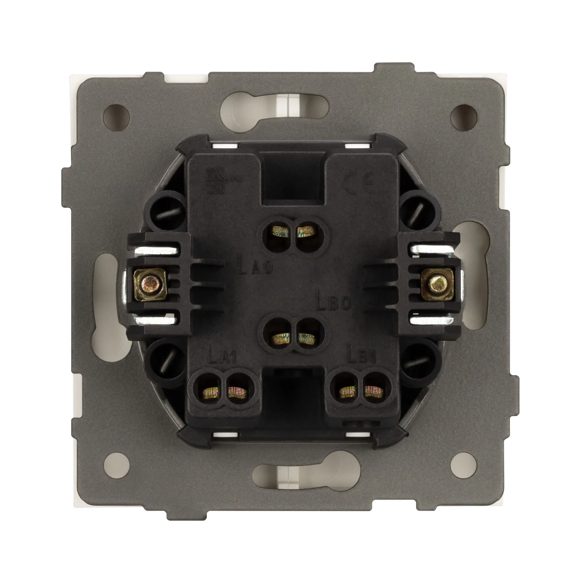 Механизм выключателя света клавишный на 1 пост 2 клавиши (непроходной). Цвет - белый. Без фронтальной рамки. Уровень пылевлагозащиты IP20. Выключатель устанавливается в стандартный круглый подрозетник круглого сечения диаметром 60мм.