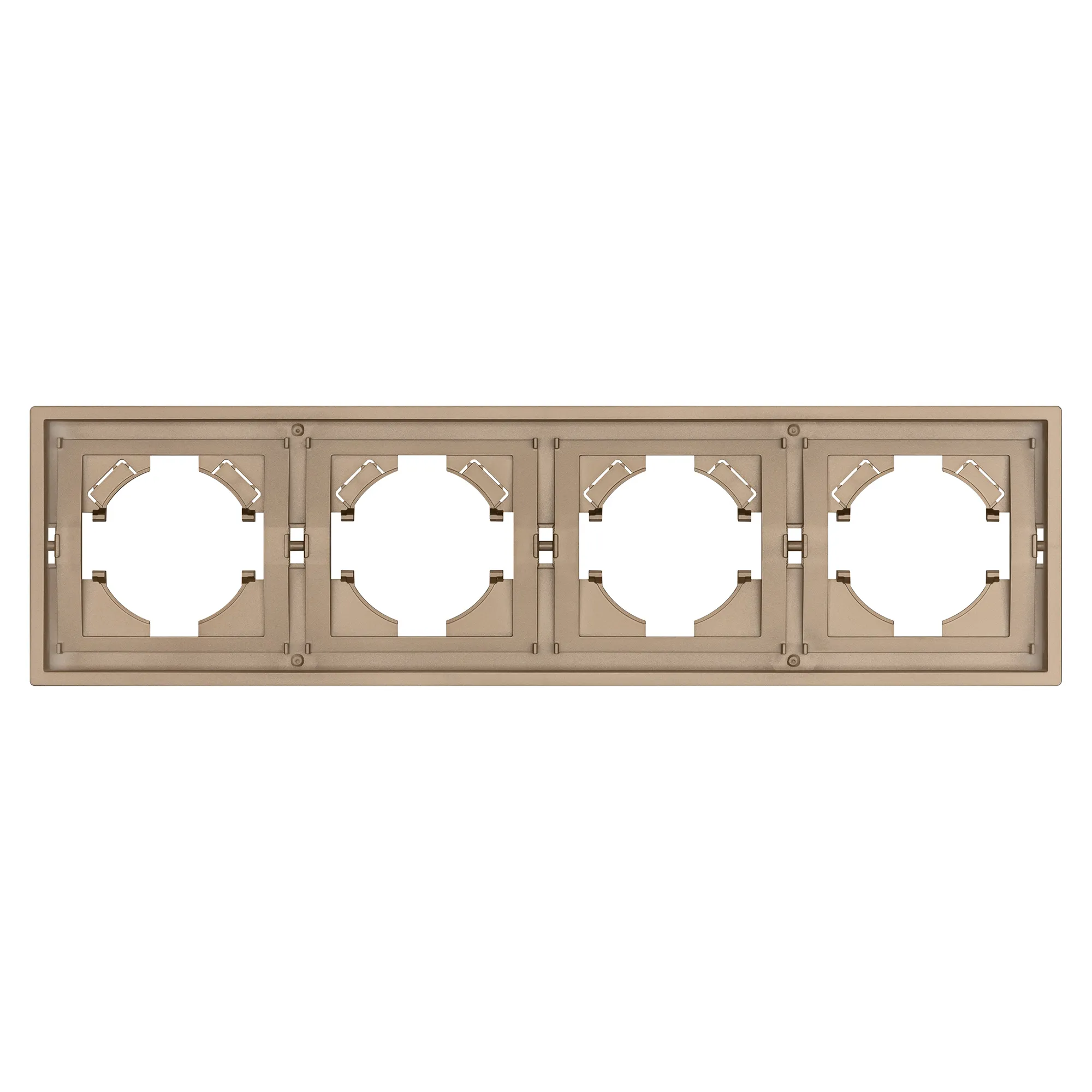 Рамка пластиковая на 4 поста, под встраиваемый механизм. Цвет - песочный. Уровень герметичности IP20. Ориентация монтажа горизонтальная.