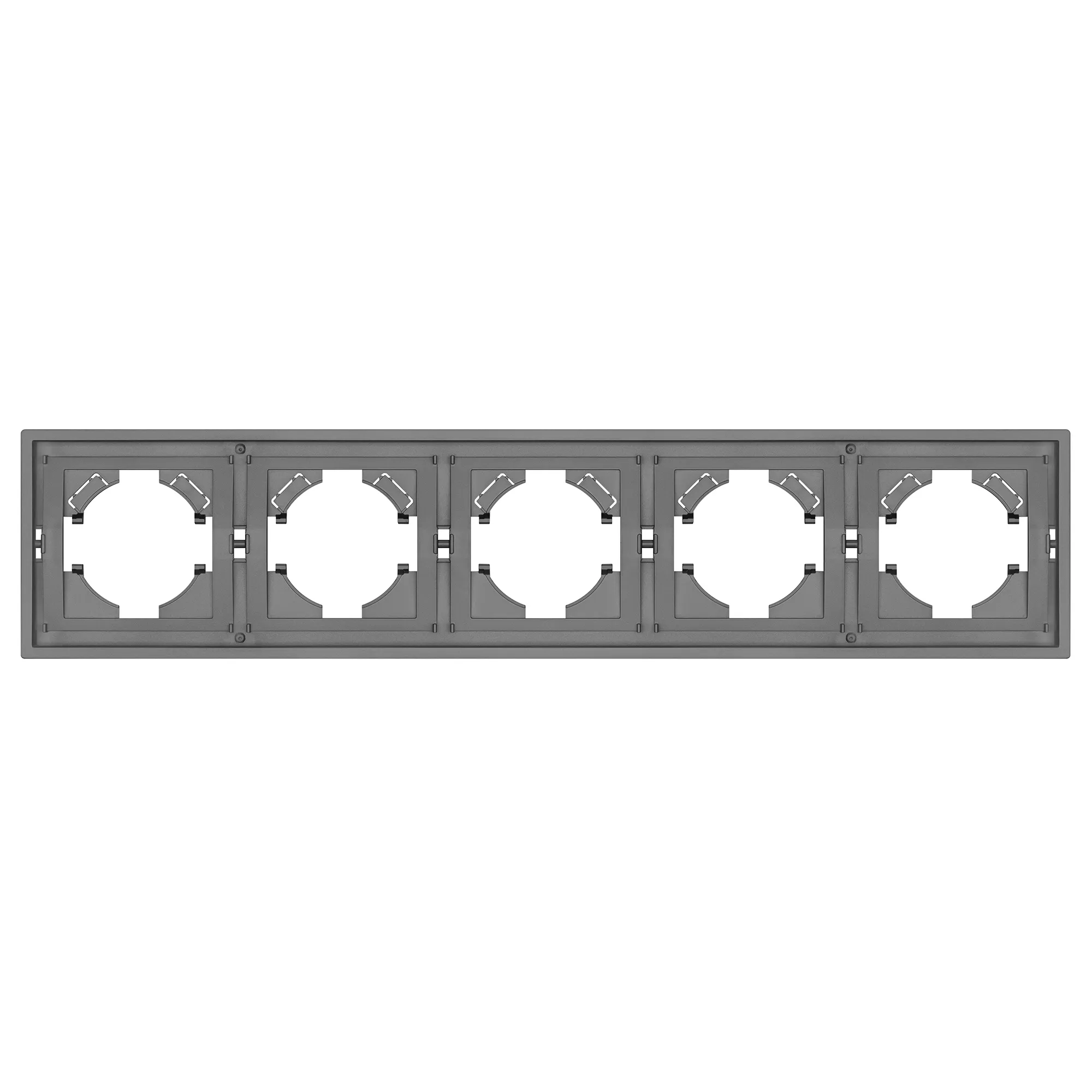 Рамка пластиковая на 5 постов, под встраиваемый механизм. Цвет - графитовый. Уровень герметичности IP20. Ориентация монтажа горизонтальная.