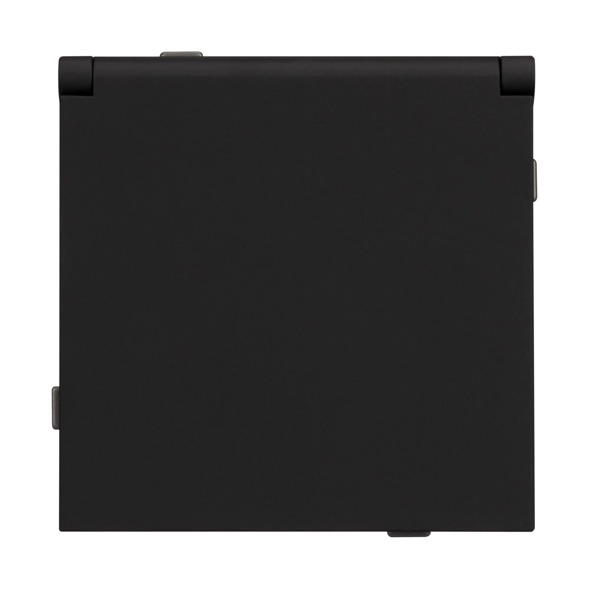 Механизм розетки с заземлением и влагозащитной крышкой на 1 пост. Цвет - матовый черный, с Soft-Touch покрытием. Без фронтальной рамки. Уровень пылевлагозащиты IP44. Розетка устанавливается в стандартный подрозетник круглого сечения диаметром 60мм.