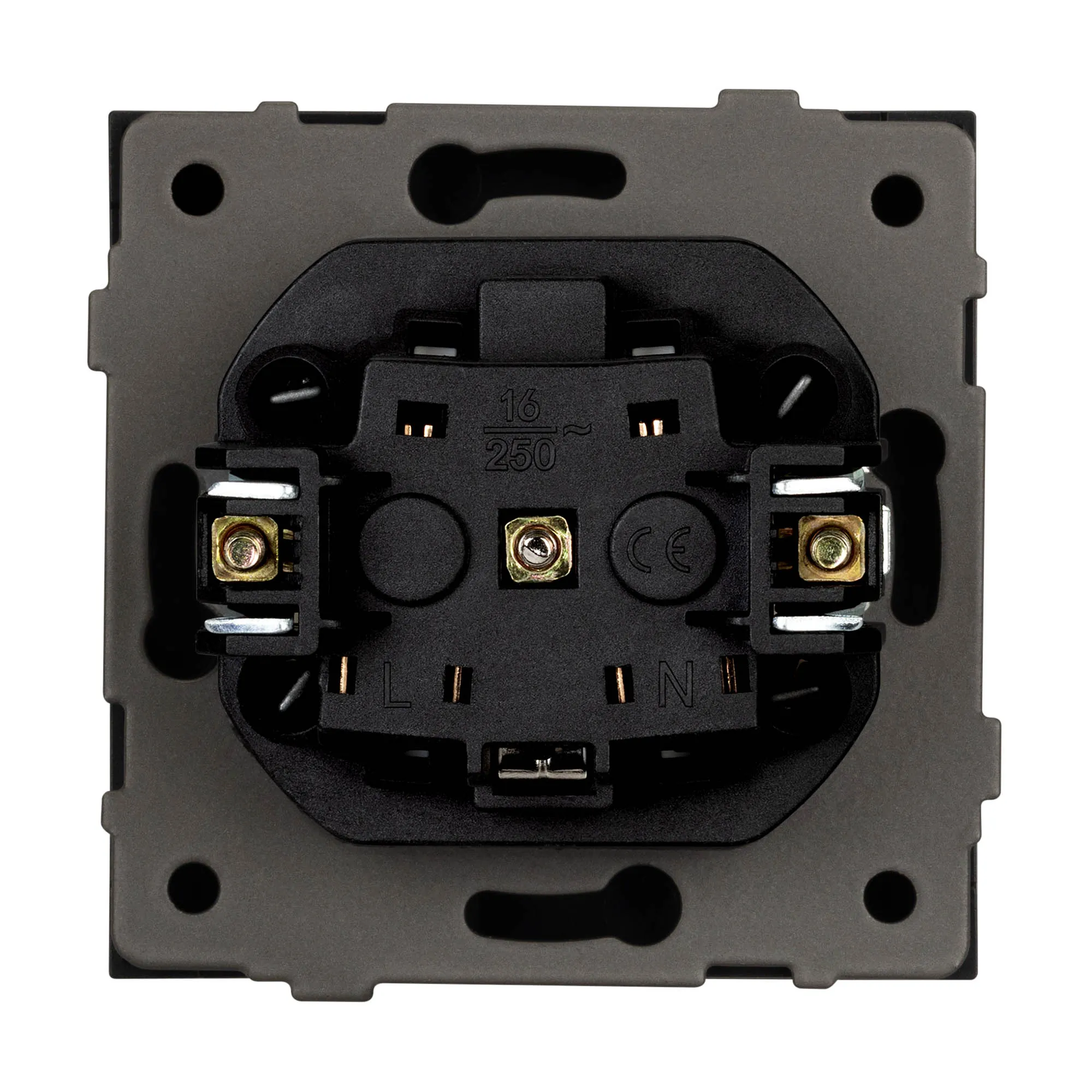 Механизм розетки с заземлением на 1 пост. Цвет - матовый графитовый, с Soft-Touch покрытием. Без фронтальной рамки. Уровень пылевлагозащиты IP20. Розетка устанавливается в стандартный подрозетник круглого сечения диаметром 60мм.