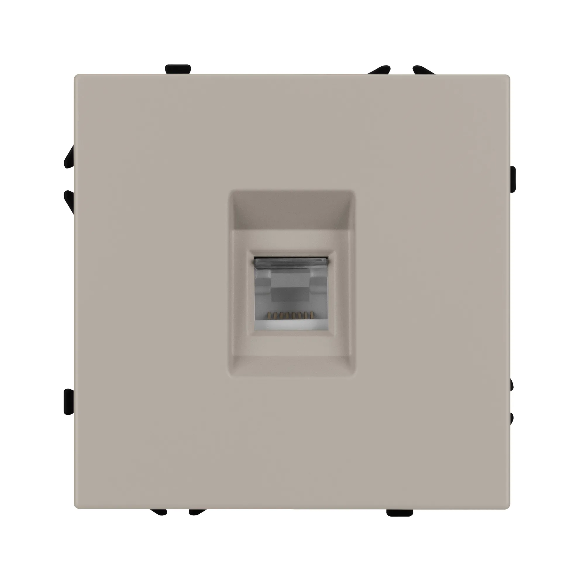 Механизм компьютерной розетки на 1 пост 6-й категории. Цвет - кашемир, с Soft-Touch поверхностью. Без фронтальной рамки. Уровень пылевлагозащиты IP20. Тип подключаемого разъема - RJ45. Розетка устанавливается в стандартный подрозетник круглого сечения диаметром 60мм.