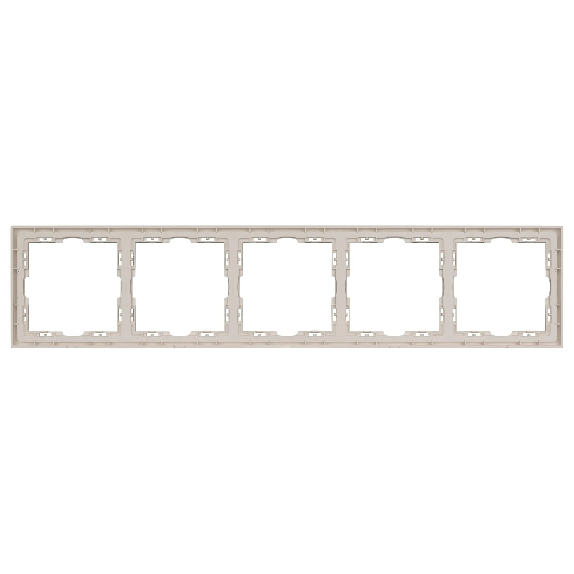 Рамка пластиковая на 5 постов, под встраиваемый механизм. Цвет - кашемир, с Soft-Touch поверхностью. Среднего уровня герметичности IP20. Ориентация монтажа горизонтальная.