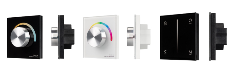 Новинки представлены роторными и сенсорными панелями для управления светодиодными лентами DIM, MIX и RGB.